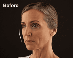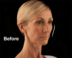 Voluma is used off-label in many areas of the face where deep filling and lift is needed, including  the temple area and jawline. A “liquid lift” can be achieved by injecting Voluma along the brow and hairline.